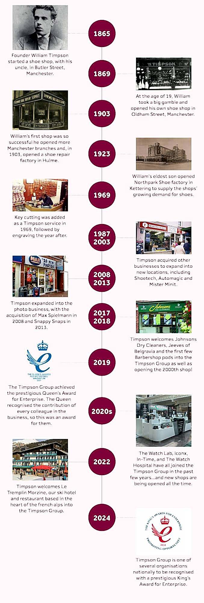 From 1865 to today, here’s a quick timeline of Timpson through the years.